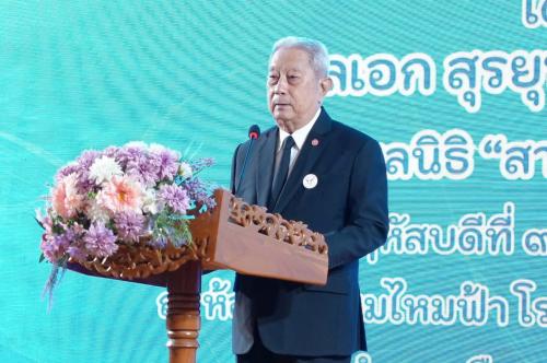 “สำหรับเยาวชนที่อาจยังมีความกังวลใจในการไปพำนักกับครอบครัวอุปถัมภ์ ขอให้มั่นใจและคลายความกังวลลงได้ ป๊ะ ม๊ะ และพ่อแม่ ครอบครัวอุปถัมป์ทุกท่าน ล้วนมีความรัก ความปรารถนาดี และผ่านการอบรมเตรียมความพร้อมมาเป็นอย่างดี ท่านเหล่านี้พร้อมที่จะใช้ความสามารถและความเอื้ออาทรทั้งหมดที่มี เพื่อดูแลและต้อนรับหลานๆ จากจังหวัดชายแดนภาคใต้ให้มีความสุขที่สุดเสมือนลูกหลานของตนเอง การไปใช้ชีวิตในต่างพื้นที่ เช่น ในภาคกลาง ย่อมมีความแตกต่างทั้งในด้านวิถีปฏิบัติ ความคิด และความเชื่อ ขอให้เยาวชนเปิดใจเรียนรู้และทำความเข้าใจ เพราะในสังคมของเราต้องมีการยอมรับในความคิดเห็นและความเชื่อที่แตกต่าง นี่คือความหมายของคำว่า "พหุวัฒนธรรม" ซึ่งเป็นความจริงของสังคมที่เราทุกคนต้องพบเจอและเรียนรู้ที่จะอยู่ร่วมกันให้ได้ตลอดชีวิต” ประธานองคมนตรี กล่าว