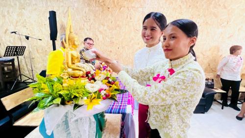 ในวันนี้ นายประจวบ ไมพานิช พร้อมนายประพันธ์ วรรณบวร นำผู้อำนวยการกลุ่มงาน พร้อมด้วยพัฒนาการอำเภอ นักวิชาการ และเจ้าหน้าที่ทุกคน ร่วมสรงน้ำพระพุทธรูป ต่อด้วยการรดน้ำขอพร เพื่อความเป็นสิริมงคลในการทำงานและการดำเนินชีวิตจากท่านพัฒนาการจังหวัดคนแรกของจังหวัดพังงาและพัฒนาการจังหวัดพังงาคนปัจจุบัน เนื่องในวันขึ้นปีใหม่ไทย บรรยากาศในวันนี้เต็มไปด้วยความอบอุ่นและเปี่ยมด้วยรอยยิ้มแห่งความสุข