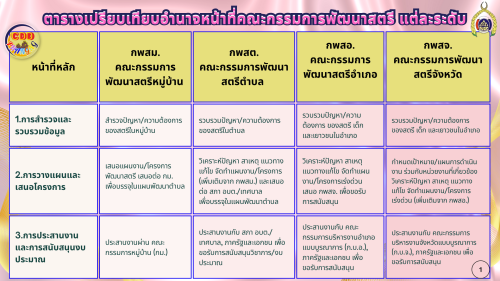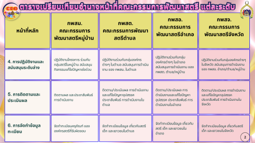 สำนักงานพัฒนาชุมชนจังหวัดพังงา สรุป "อำนาจหน้าที่" ของ คณะกรรมการพัฒนาสตรี ทั้ง 4 ระดับ (ยกเว้นระดับภาค) ฉบับเข้าใจง่าย มาให้แล้วในภาพนี้ค่ะ