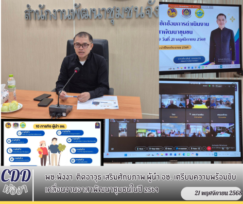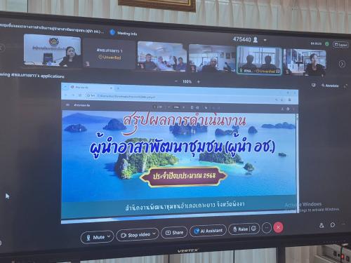 นายประพันธ์ วรรณบวร พัฒนาการจังหวัดพังงา เป็นประธานการประชุมการดำเนินงานอาสาพัฒนาชุมชน ประจำปีงบประมาณ พ.ศ. 2569 โดยมีนางอุบลรัตน์ ไชยสมบัติ ผู้อำนวยการกลุ่มงานส่งเสริมการพัฒนาชุมชน โดยใช้วิธีการประชุมผ่านระบบ ผ่านระบบ Cisco WebEx Meetings ร่วมกับพัฒนาอำเภอ พัฒนากร และผู้นำอาสาพัฒนาชุมชน (ผู้นำ อช.) ทั้ง 8 อำเภอ เข้าร่วมประชุม โดยมีรายละเอียดการประชุมดังนี้