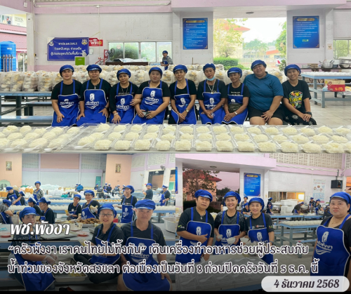 “ครัวพังงา เราคนไทยไม่ทิ้งกัน” เดินเครื่องทำอาหารช่วยผู้ประสบภัยน้ำท่วมของจังหวัดสงขลา ต่อเนื่องเป็นวันที่ 8 ก่อนปิดครัววันที่ 5 ธ.ค. นี้