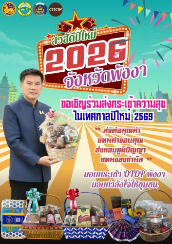 สำนักงานพัฒนาชุมชนจังหวัดพังงา ร่วมกับ บริษัท รู้รักสามัคคีพังงา (วิสาหกิจเพื่อสังคม) จำกัด ขอเชิญชวนส่วนราชการ หน่วยงานเอกชน และพี่น้องประชาชนทุกท่าน ร่วมส่งมอบความสุขและความปรารถนาดีในช่วงเทศกาลขึ้นปีใหม่ ผ่านการเลือกซื้อ "กระเช้าของขวัญ OTOP จังหวัดพังงา" ประจำปี 2569