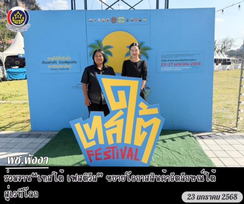 นายประพันธ์ วรรณบวร พัฒนาการจังหวัดพังงา มอบหมายนางสาวถนอมจิตร์ บุญเพ็ง นักวิชาการพัฒนาชุมชนชำนาญการพิเศษ ร่วมเป็นเกียรติในพิธีเปิดงาน “เทสใต้ เฟสติวัล” ภายใต้โครงการส่งเสริมสินค้าอัตลักษณ์เมืองใต้ เชื่อมโยงการค้าโลก ปี 2569 โดยมี นางสาวกนิษฐา กังสวนิช ผู้ตรวจราชการกระทรวงพาณิชย์ เป็นประธาน และมีนายสราวุฒิ ธนาเจริญสกุล รองผู้ว่าราชการจังหวัดพังงา ให้เกียรติกล่าวต้อนรับผู้มีเกียรติ พร้อมด้วยพาณิชย์จังหวัดภาคใต้ หัวหน้าส่วนราชการ ผู้บริหารภาคเอกชน สื่อมวลชน และประชาชนเข้าร่วมงานอย่างคับคั่ง