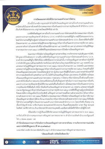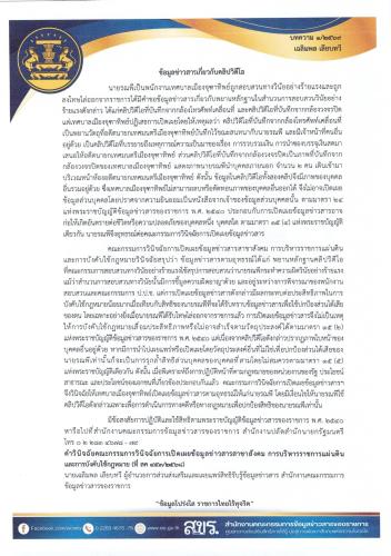 สำนักงานพัฒนาชุมชนจังหวัดพังงา เผยแพร่บทความสรุปประเด็นคำวินิจฉัยของของคณะกรรมการวินิจฉัยการเปิดเผยข่าวสารและประเด็นข้อหารือ เพื่อเป็นเอกสารเผยแพร่ความรู้เกี่ยวกับพระราชบัญญัติข้อมูลข่าวสารของราชการ พ.ศ. 2560 และนำไปใช้ประโยชน์ประกอบการปฏิบัติหน้าที่ในการเปิดเผยข้อมูลข่าวสารต่าง ๆ ให้เป็นไปตามพระราชบัญญัติข้อมูลข่าวสารของราชการ พ.ศ. 2560