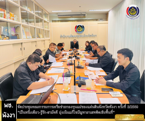 วันที่ 10 กุมภาพันธ์ 2569 ณ ห้องประชุมสำนักงานพัฒนาชุมชนจังหวัดพังงา ชั้น 3 ศาลากลางจังหวัดพังงา