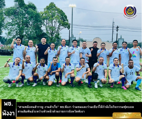 “สานพลังคนสำราญ งานสำเร็จ” พช.พังงา ร่วมชมและร่วมเชียร์ให้กำลังใจกิจกรรมฟุตบอลสานสัมพันธ์ระหว่างหัวหน้าส่วนราชการจังหวัดพังงา