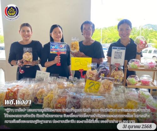 💰💰 กิจกรรม “ผู้ว่าฯ พาช้อป” เพื่อการจำหน่ายผลิตภัณฑ์ หนึ่งตำบล หนึ่งผลิตภัณฑ์ (OTOP) จังหวัดพังงา มีผู้ผลิต ผู้ประกอบการ OTOP เข้าร่วมจำหน่าย จำนวน 7 ราย/กลุ่ม ผลิตภัณฑ์ จำนวน 16 ผลิตภัณฑ์ โดยมียอดจำหน่ายผลิตภัณฑ์ OTOP ในวันนี้ เป็นเงิน
